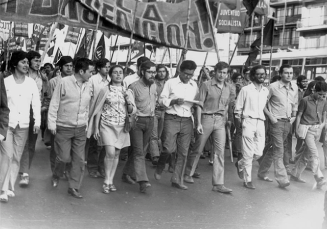 La victoria electoral de 1970 fue un momento crucial en el proceso de compromiso político y social de muchos jóvenes, un factor esencial en la transformación que esta sociedad injusta reclama para dar paso a una nueva sociedad, decía el presidente Allende. A lo largo de su gobierno, cientos y cientos de jóvenes participaron en las jornadas de trabajos voluntarios, incluso para enseñar a leer y construir casas a personas de localidades rurales muy alejadas y o insertándose en las empresas con el objetivo de aumentar la producción, además de las multitudinarias marchas y movilizaciones de apoyo al gobierno popular. Por entonces más del 60 por ciento de la población chilena tenía menos de 30 años. En esta efervescencia, mientras muchos ingresaban a los partidos políticos de la coalición de gobierno, otros recibían formación ideológica en Escuelas de Cuadros en Chile, Cuba y la Unión Soviética que también contemplaba entrenamiento guerrillero. Influidos fuertemente por el ejemplo de la revolución cubana, la hazaña del Che Guevara y en plena guerra fría el repudio a la intervención de Estados Unidos en Vietnam, la juventud socialista compartía sus discusiones al calor de la consigna –El presente es de lucha, el futuro es nuestro- que pintaban las brigadas muralistas y al mismo tiempo, enraizados en las masas enfrentaban cara a cara el boicot, impulsado por los camioneros, procediendo a rescatar alimentos y productos de primera necesidad en los operativos que realizaban en las carreteras. Enrique Norambuena Aguilar, miembro de la Comisión Política del Comité Central de la JS y Subsecretario de Propaganda y Comunicaciones, responsable nacional de la Brigada Elmo Catalán (BEC), organismo juvenil de organización especializada en propaganda muralista callejera en todo el país, recuerda el protagonismo de la juventud inserto en el proceso de cambios en la sociedad y dice que esta actitud se reflejaba en todos los ámbitos, incluso en el musical con el surgimiento de la canción protesta. «La Brigada Ramona Parra y más adelante la Elmo Catalán que lleva el nombre de un joven socialista chileno que murió luchando por la revolución cubana fueron las pioneras del muralismo como una nueva forma de propaganda política que acerca además el arte a quienes no tenían acceso. La  BEC pintaba en las murallas las Equis de la campaña presidencial de Allende«.