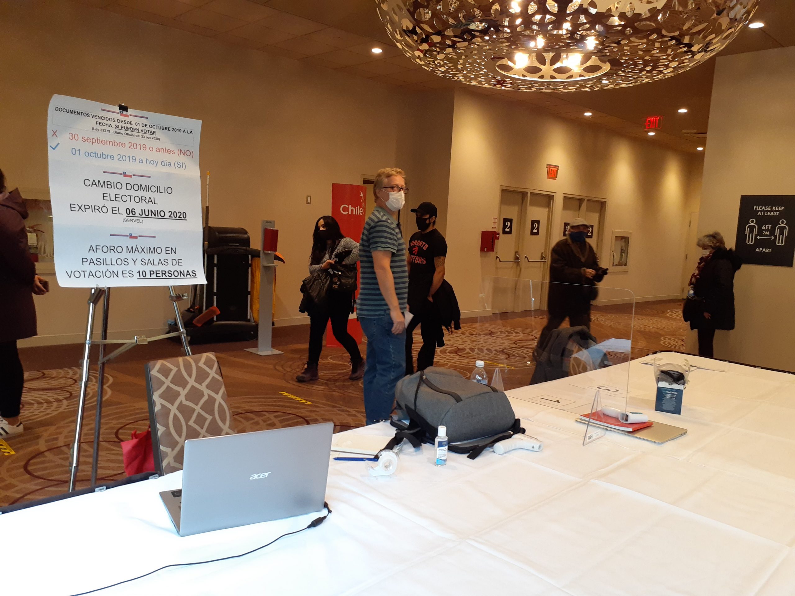 Constituidas las cuatro mesas en el céntrico establecimiento -seleccionado por SERVEL a través del Consulado de Chile en Toronto- el proceso se desarrolló sin mayores inconvenientes, y respetando las medidas sanitarias dispuestas por las autoridades de la Provincia de Ontario. El hotel, además, asignó personal especial que colaboró con la sanitización permanente de los mesones al interior de las cuatro urnas. Fue solo durante el horario establecido como “preferencial”, entre las 2:00 y las 3.30 pm., donde las autoridades, personal consular, vocales, delegados electorales y apoderados de mesas, se vieron enfrentados a la mayor concurrencia; estimándose que pasadas las 4.00 pm (hora local) habría participado más del 80 por ciento del Padrón Electoral habilitado en este proceso.