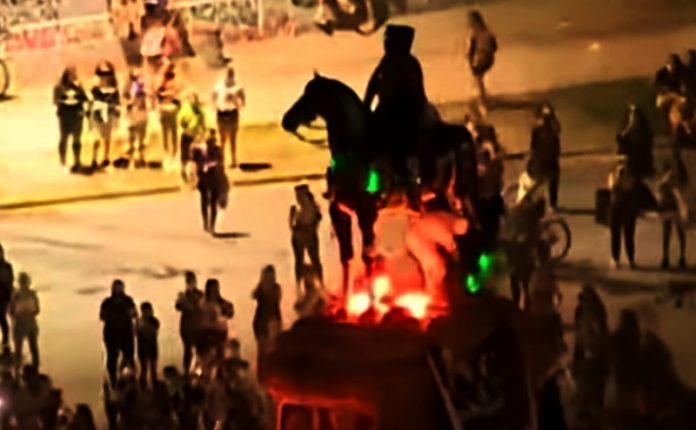 Esas llamas alrededor del monumento al general Baquedano provocaron un nuevo conflicto. El Ejército emitió un comunicado tratando de “cobardes desadaptados” y “antichilenos” a quienes cometieron este acto que calificaron como “indignante y repudiable para todos nuestros compatriotas”. Señalan que “los antisociales que continuamente agreden esta figura ignoran que a sus pies reposa la tumba de un soldado chileno, como cualquiera de nosotros, que no se pudo identificar y que, como tal, representa a miles de compatriotas que murieron anónimamente por la patria y que nunca pudieron volver a Chile».