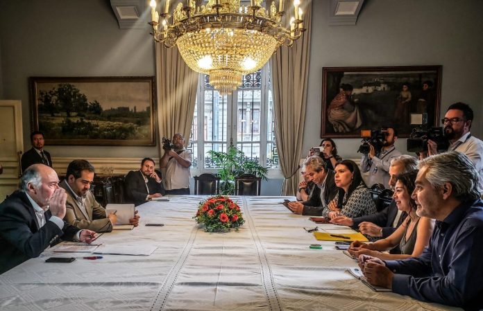 Pasó casi como un suspiro, pero en la semana se realizó una reunión muy importante para ir ampliando el arco de protagonistas que buscan la solución a la protesta social que comenzó el 18 de octubre. Los presidentes del Senado, Jaime Quintana (PPD) y de la Cámara de Diputados (DC), Iván Flores, se reunieron con un sector importante de la Mesa de Unidad Social, particularmente con el bloque sindical para abordar los petitorio de esa organización.