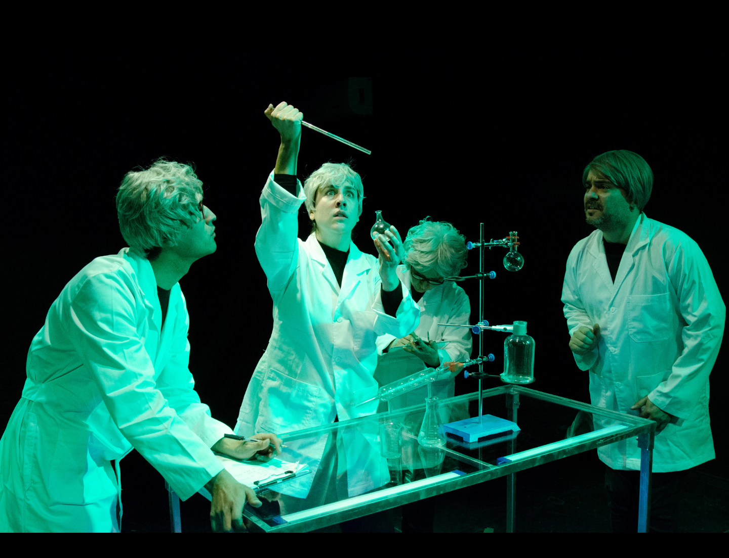 Cuatro talentosos actores serán los encargados de dar vida a un texto en el que los datos históricos duros se entrelazan con las actitudes contradictorias, mezquinas y delirantes de científicos, militares, comunicadores y artistas. Los integrantes del elenco asumirán múltiples roles que les permitirán activar las voces de víctimas y victimarios, así como las de ciudadanos contemporáneos que se sienten atormentados por las pulsiones de la memoria.