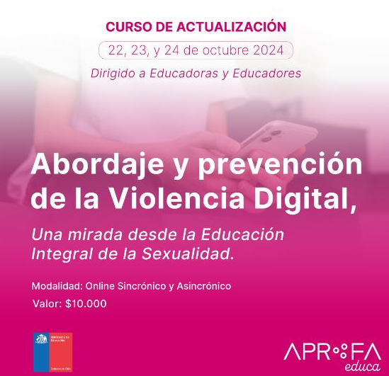 “Te invitamos a participar de este curso de actualización dirigido a equipos de educación, equipos de organizaciones y movimientos sociales y personas que trabajan con niños, niñas y jóvenes en ámbitos educativos, estudiantes de formación docente y técnicas (os) con interés en la temática. Este se realizará los días 22, 23 y 24 de octubre a través www.aprofa.cl”, indicó la organización.