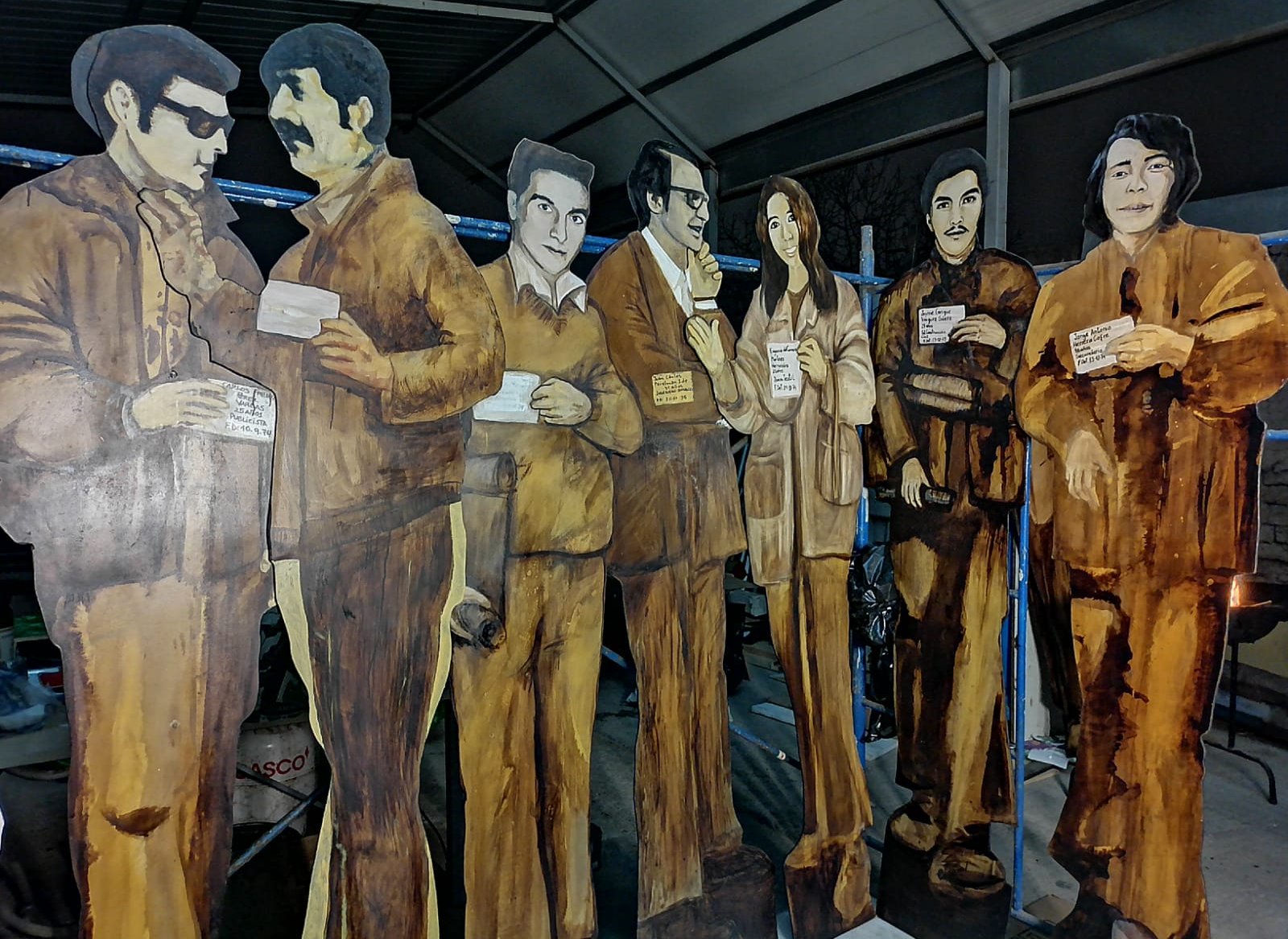 Todas las figuras fueron confeccionadas en el taller que el artista instaló en el sótano de la sede de la Federación de Estudiantes de la Universidad de Chile (FECH), un lugar donde incluso a veces dormía. Paradójicamente, este mismo edificio albergó el cuartel central de la policía de seguridad del general Pinochet hasta el año 1978. Afectado por el profundo impacto de la relación establecida con las historias de represión y destino final de estos 119 detenidos desaparecidos, José Rodríguez se enfermó, llegando al punto de suicidarse el 14 de julio de 2023. Su legado, sin embargo, continúa vivo en cada manifestación y escena pública. Quienes lo conocieron dicen que su ausencia también es presencia. Su memoria tampoco morirá.
