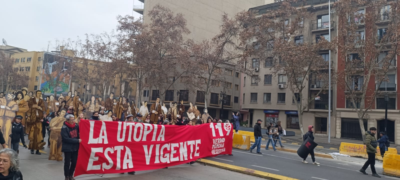 Negándose al olvido, familiares, amigos y compañeros demandan en las calles con las figuras corpóreas de 119 detenidos desaparecidos por la verdad, justicia, fin a la impunidad y a la mentira institucionalizada de los medios de comunicación; una impactante estética visual que no solo muestra sus identidades en sus fichas que portan cada uno en sus manos, sino que también los representa con objetos que evocan sus oficios y vidas; sus libros, cuadernos, cámaras, mimeógrafos, martillos, o incluso leyendo un diario.