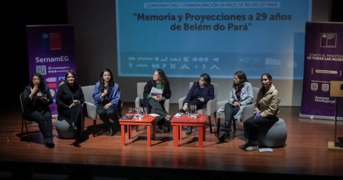 La ministra de la Mujer y la Equidad de Género, Antonia Orellana Guarello, y la subsecretaria de la cartera Luz Vidal Huiriqueo encabezaron el conversatorio “Memoria y proyecciones a 29 años de Belém do Pará”, donde destacadas panelistas intercambiaron experiencias sobre su trascendencia y analizaron los desafíos que implican las nuevas y emergentes formas de violencia basadas en género.
