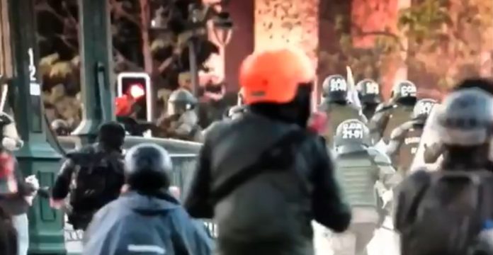 Izquierda chilena exige la renuncia del director de Carabineros por esta acción producida este viernes durante las manifestaciones en Santiago de Chile pic.twitter.com/8gA1PL0wtU