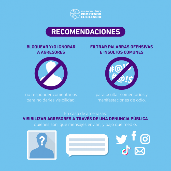 – Bloquear y/o ignorar a agresores, eliminar comentarios para no darles visibilidad y no responderles.