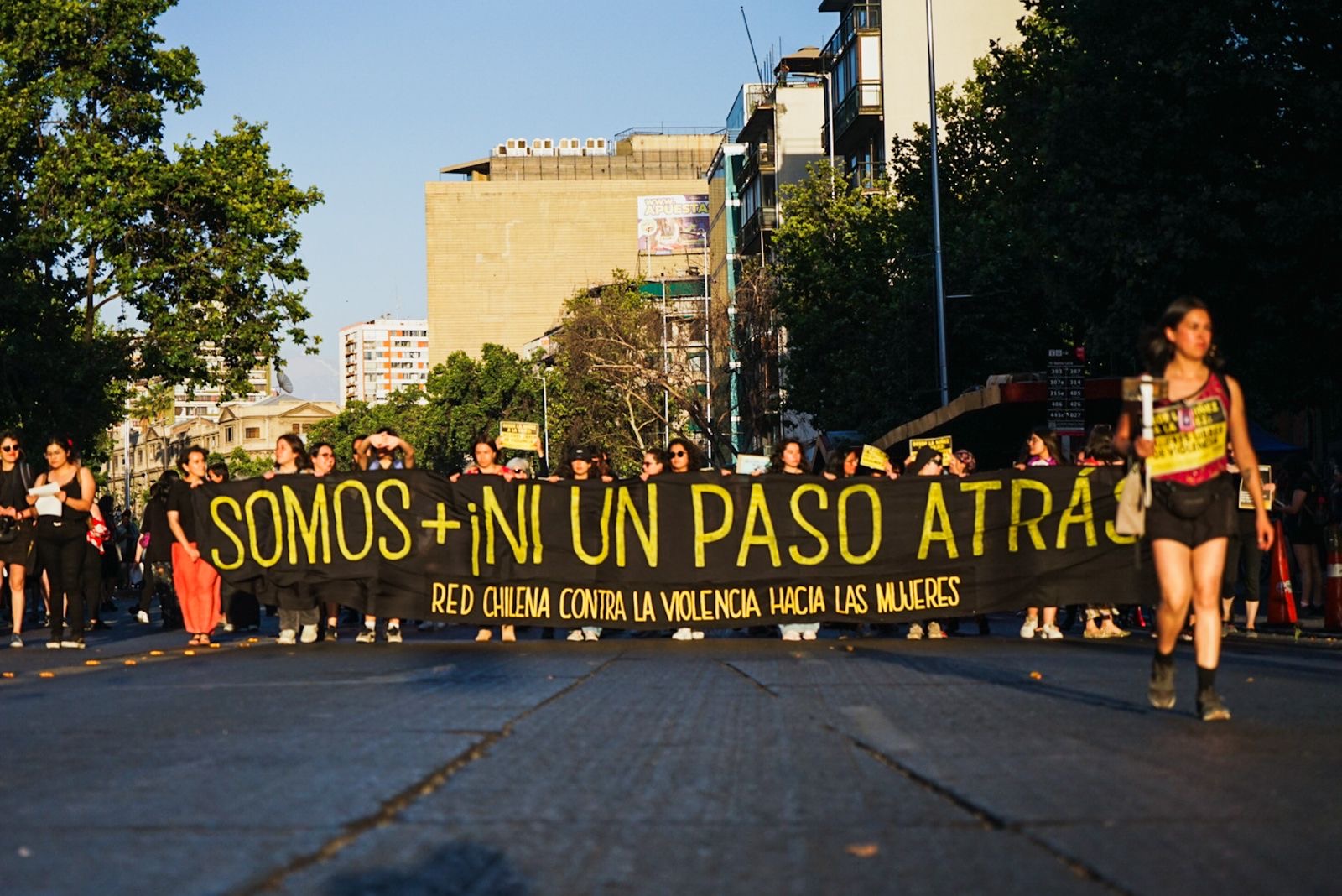 La jornada continuó con una marcha convocada a las 18:30 desde el Centro Cultural Gabriela Mistral (GAM) y se extendió hasta la explanada de Los Héroes, donde se leyó la declaración de la Red Chilena. En ésta se recordó a las 40 mujeres víctimas de violencia femicida sólo en lo que va de este 2024. Al respecto, la organización sostuvo que: “salimos a la calle juntas y organizadas para manifestar que no daremos ningún paso atrás, que nuestra decisión de vivirvidas libres de violencia patriarcal es intransable”.