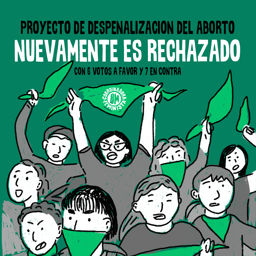 La Red de Periodistas y Comunicadores Feministas advirtió que Chile continuará criminalizando a niñas, adolescentes y mujeres por abortar: “Lamentamos que Comisión de Mujeres y Equidad de Género de @Camara_cl rechazara idea de legislar despenalización del aborto. Como @redperiofem esperamos que en Sala se priorice el debate basado en derechos humanos de las mujeres, adolescente y niñas”.