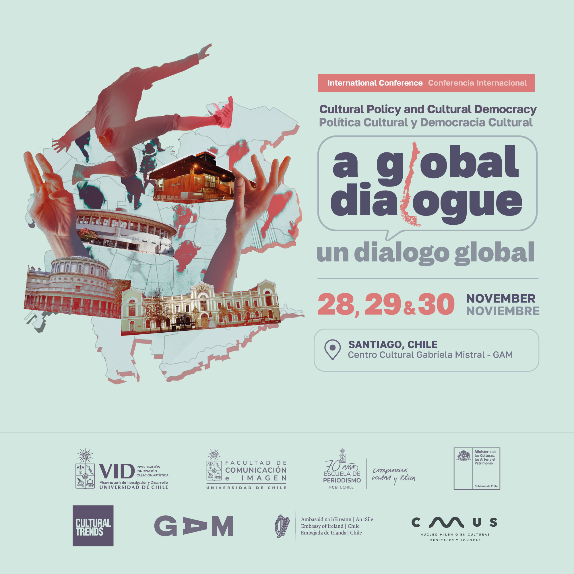 La Conferencia Internacional Política Cultural y Democracia Cultural: Un Diálogo Global se hará por primera vez fuera de Europa y la ciudad elegida para este encuentro, que ocurrirá durante el 28, 29 y 30 de noviembre en el GAM, es Santiago de Chile.