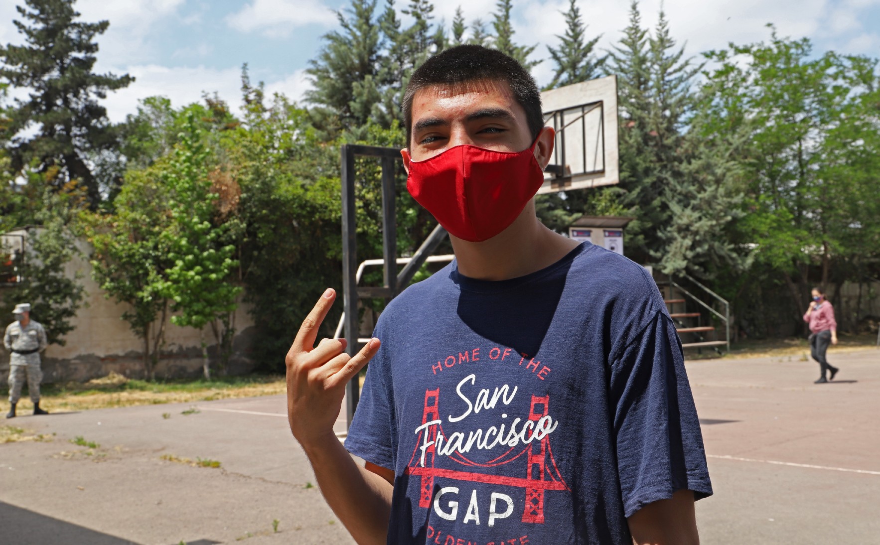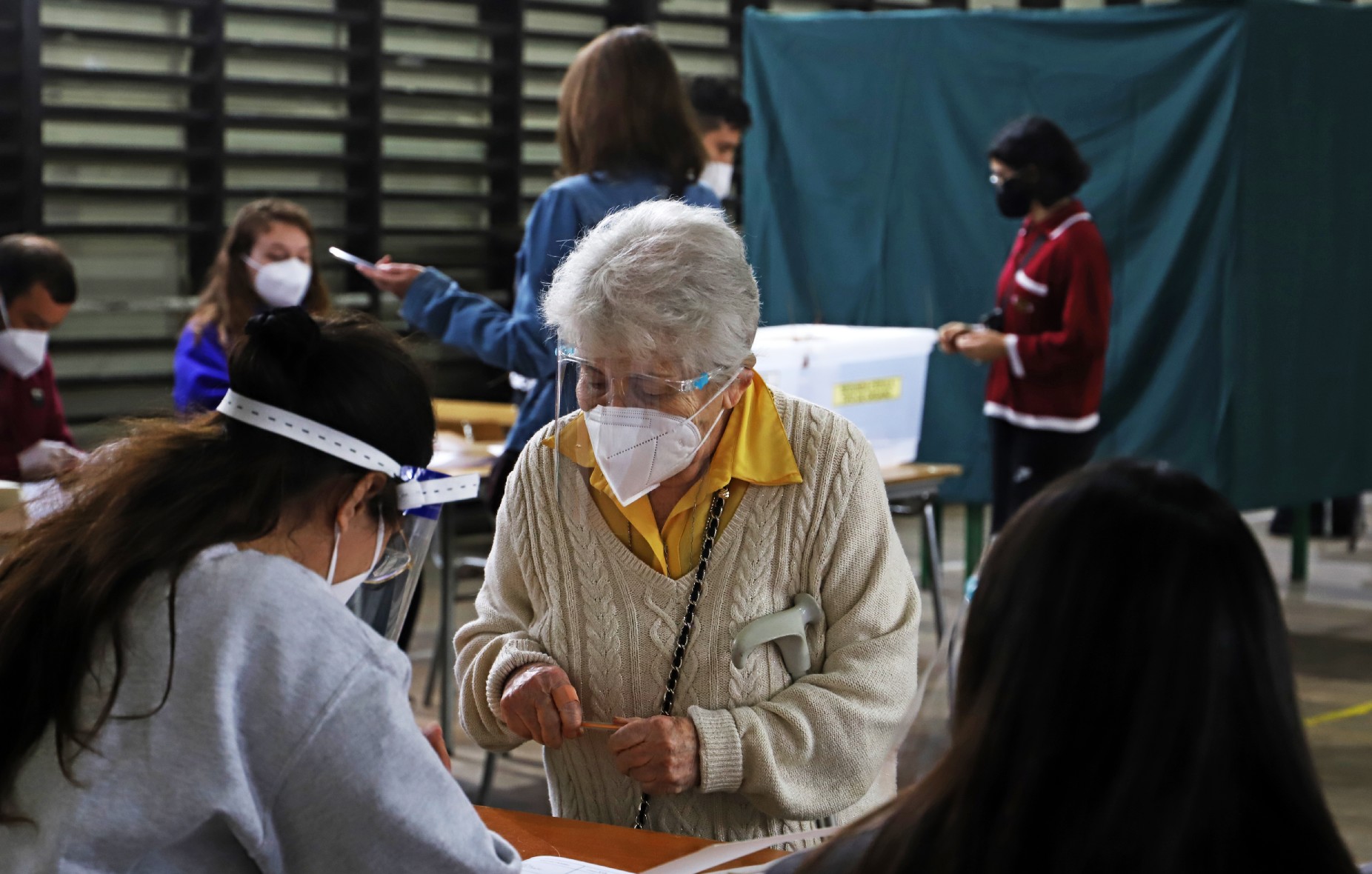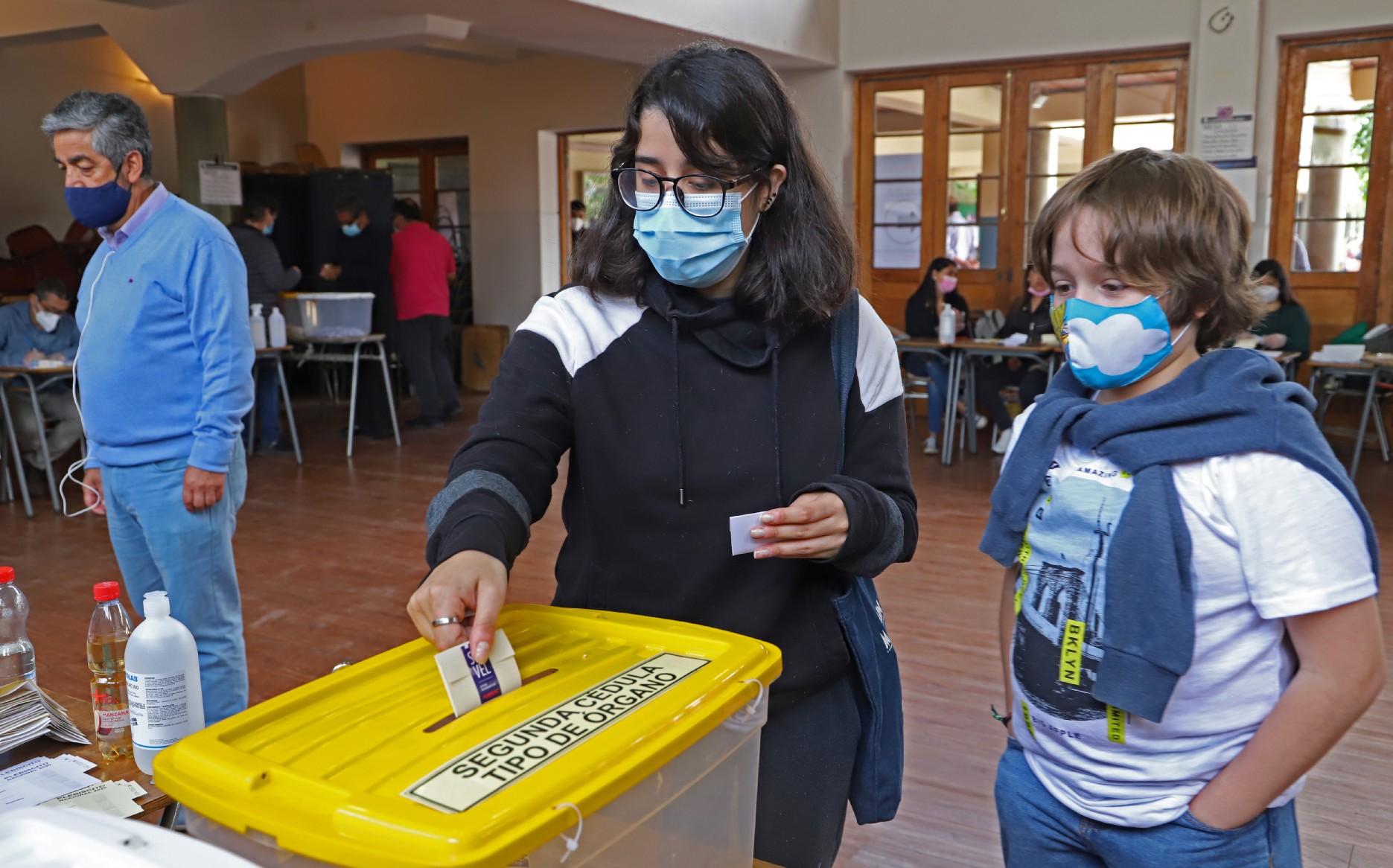 “Somos 8 facilitadores en este recinto y nuestra tarea es apoyar a los electores. La mayoría somos jóvenes, entre los 18 y 22 años y se creó esta figura por los temas sanitarios y la pandemia que vive Chile”, dice Josefa muy seria y segura.