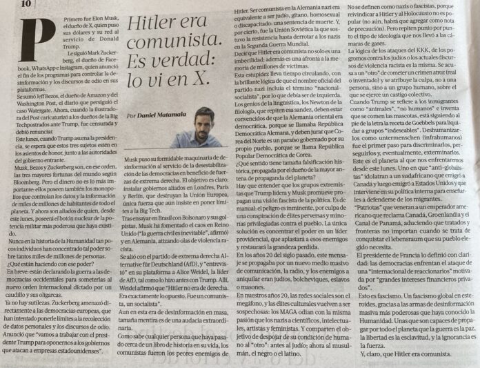 “Como dirigentas y dirigentes del Colegio de Periodistas de Chile, queremos expresar no solo solidaridad con el colega Daniel Matamala, que ha sido injustamente censurado en redes sociales tras publicar un análisis crítico sobre el poder y la influencia de figuras como Elon Musk, Jeff Bezos y Mark Zuckerberg en el ámbito digital y en la vida social, sino que también advertir sobre los peligros que las nuevas tecnologías suponen para las audiencias. Este acto no solo es un ataque contra un periodista individual, sino que representa un riesgo inminente para la libertad de expresión y la libertad de prensa en nuestro país y a nivel global”, señala la Orden Profesional.