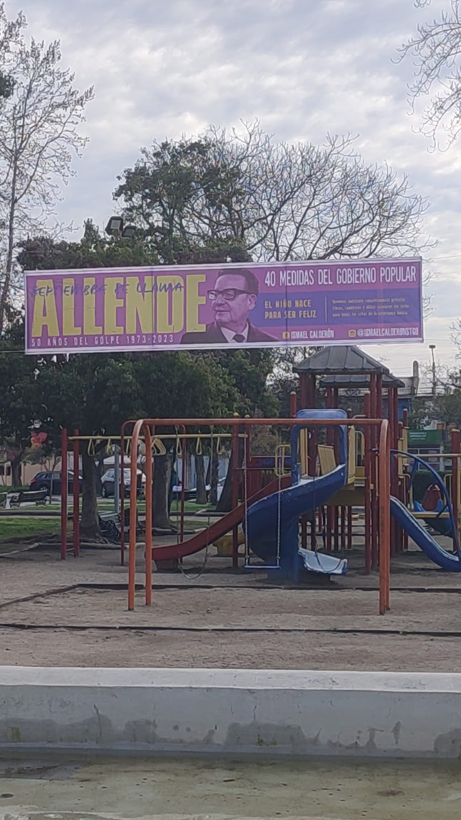 Agrega que en plazas públicas se despliegan grandes lienzos con el rostro de Allende y la leyenda de que “todo niños tiene derecho a ser feliz o el derecho a medio litro de leche”.