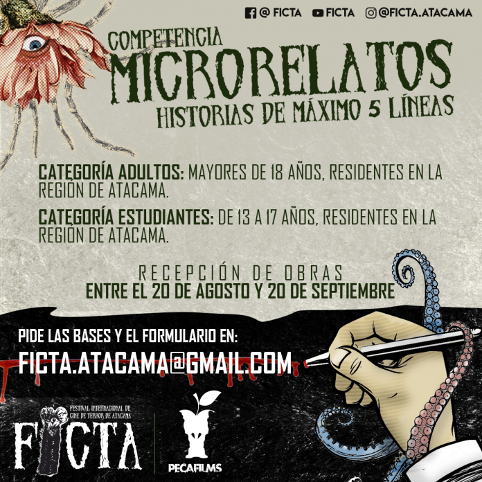 FICTA tiene dos convocatorias asociadas, los concursos de Micrometrajes y Microrelatos de Terror, “por un lado microrelatos contados desde las personas y habitantes de la zona, y por otro los micrometrajes,  que pueden ser narrativas visuales desde la región, u otras regiones del país, incluso desde el extranjero para que se produzca este intercambio cultural”, explica Latorre.