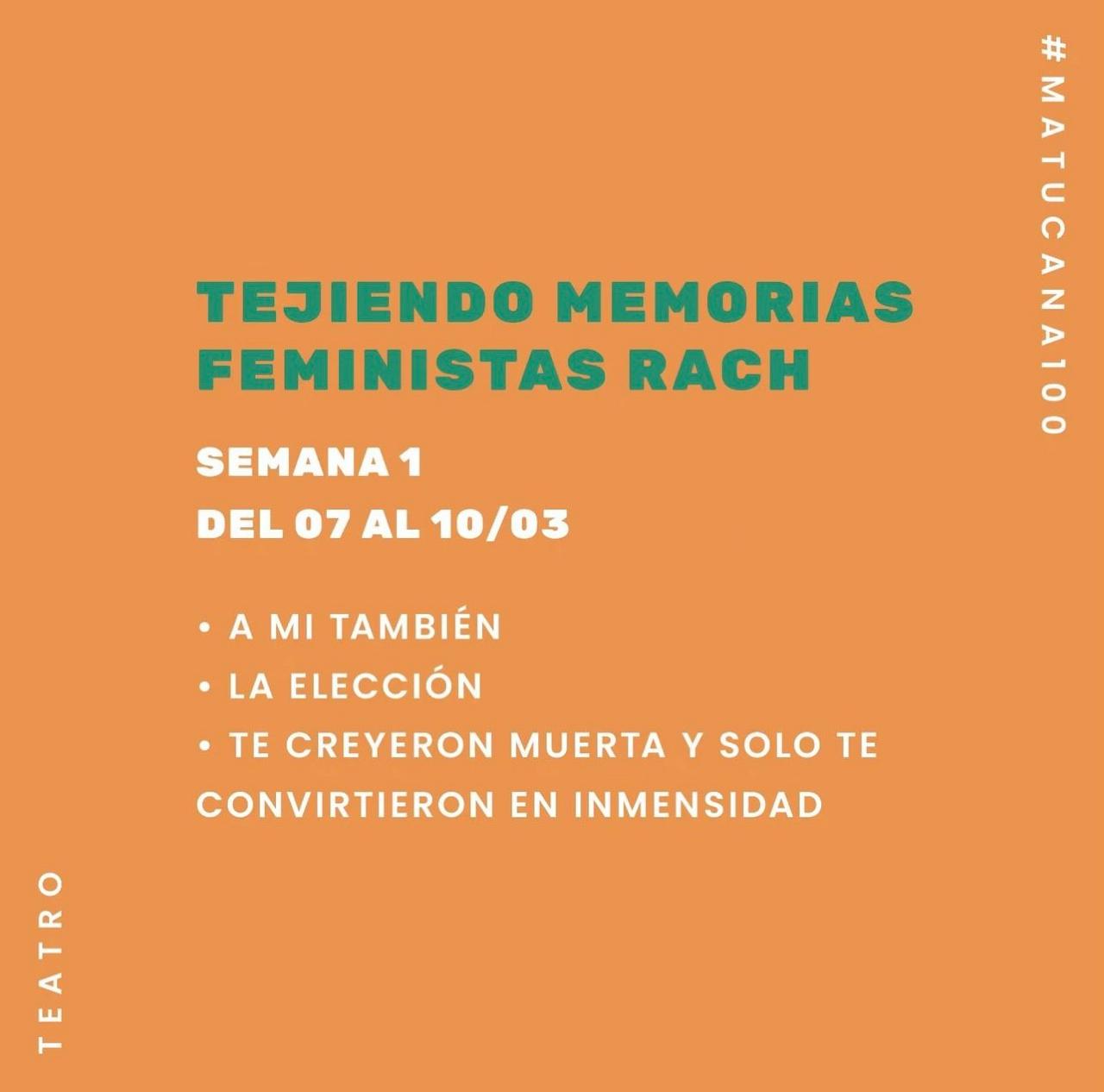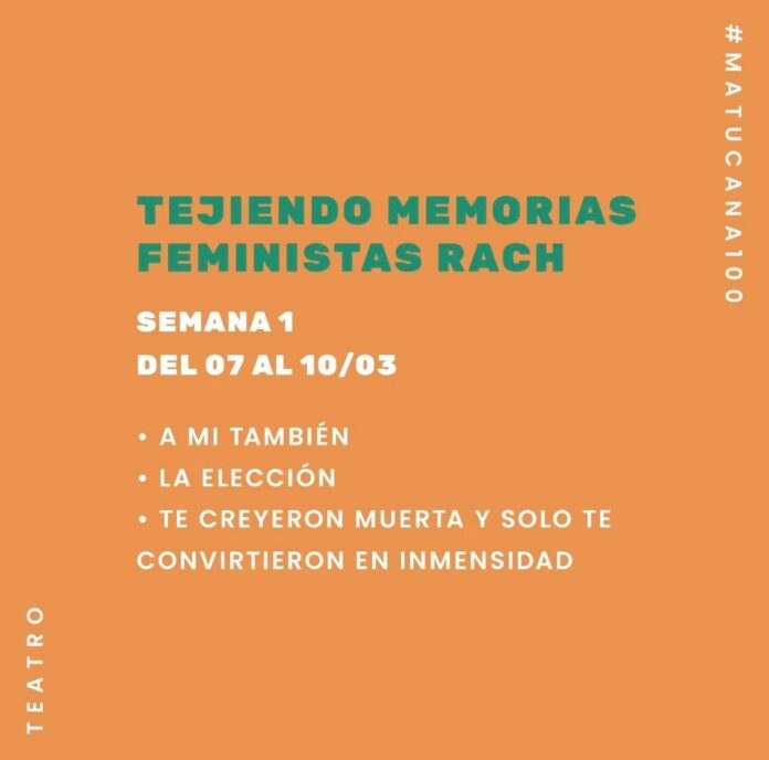 Son las obras que se van a presentar la semana 1 del ciclo de monólogos tejiendo memorias feministas de la red de actrices chilenas rach semana 1 en Microsala MatucanaCien.