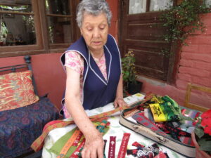 “Mis inicios en el tejido, nos cuenta, comenzaron, como ocurre con muchas de nosotras, observando a mi mamá. Pero ella no quería que me dedicara a esto porque prefería que estudiara pues el trabajo era muy sacrificado. Además las cosas se dieron mal, nos quedamos sin papá y en la familia éramos 10 hermanos. De este modo no tuve más posibilidades que aprender pero soy autodidacta porque mi madre nunca quiso enseñarme”.