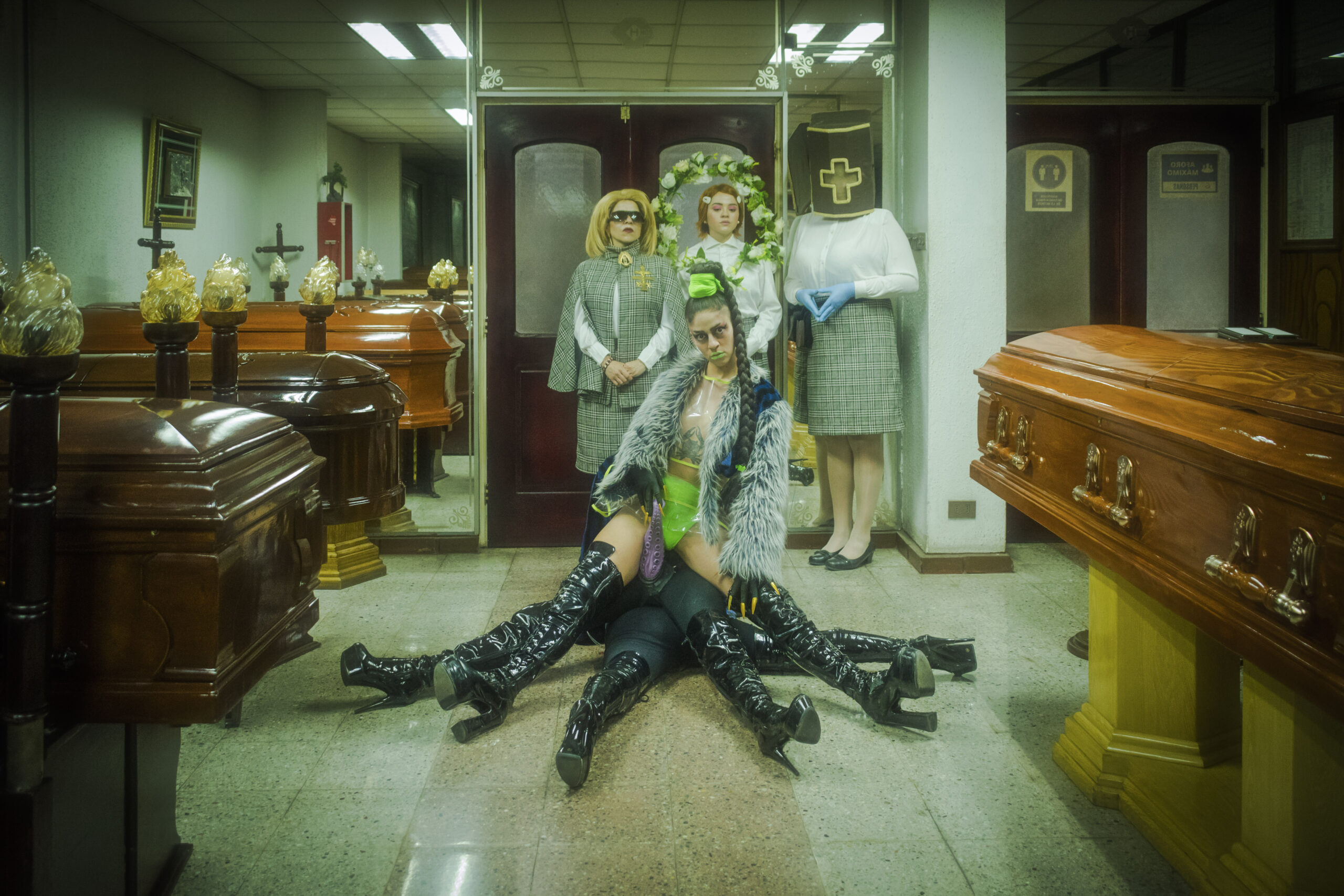 La obra cuenta la historia de Diana, una prostituta que, después de muchos años, regresa junto a sus amigas y amantes a la funeraria en la que asesinaron a su madre en extrañas circunstancias. Ahí revivirá antiguos dolores y heridas de infancia, que la harán enfrentarse a las memorias del abuso sexual en los secretos familiares. Este montaje se presenta como una versión libre de la tragedia griega “Las Bacantes” de Eurípides. “Es una adaptación, que rescata el frenesí báquico pero sin dios, sin Dionisio, sin moral. Sin que sea por castigo ni condena de un dios patriarcal y punitivo”, recalca la directora Cheril Linett.