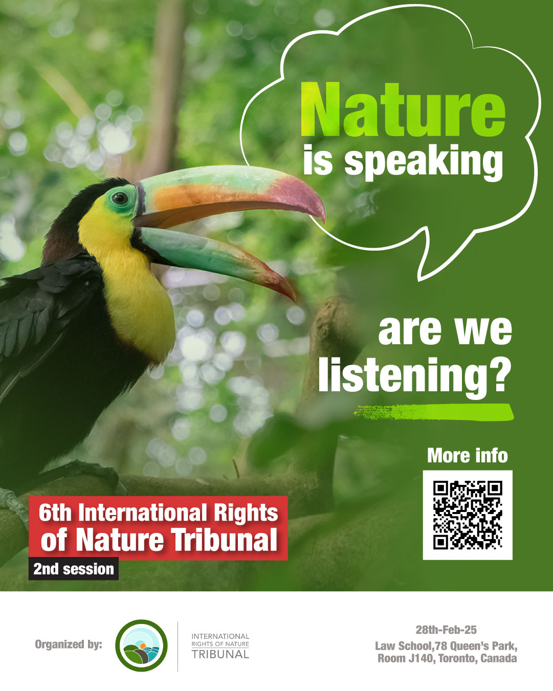 Canadá es un actor clave en la industria minera mundial, ya que el 47% de las empresas públicas del mundo cotizan en las bolsas canadienses. A pesar de los importantes abusos contra el ambiente y los derechos humanos vinculados a las operaciones mineras canadienses en América Latina, África y Asia-Pacífico, Canadá sigue dando prioridad a la extracción de recursos. La audiencia del Tribunal pretende exponer estas prácticas y proponer una respuesta crítica para defender los Derechos de la Naturaleza y de las comunidades afectadas. Previo a la sesión de Toronto, el Tribunal celebró una audiencia local sobre Dundee Precious Minerals (DPM) en Serbia, que dio lugar a una declaración de los jueces del Tribunal condenando tanto a DPM como al gobierno serbio por su papel en las violaciones actuales y potenciales de los Derechos de la Naturaleza.