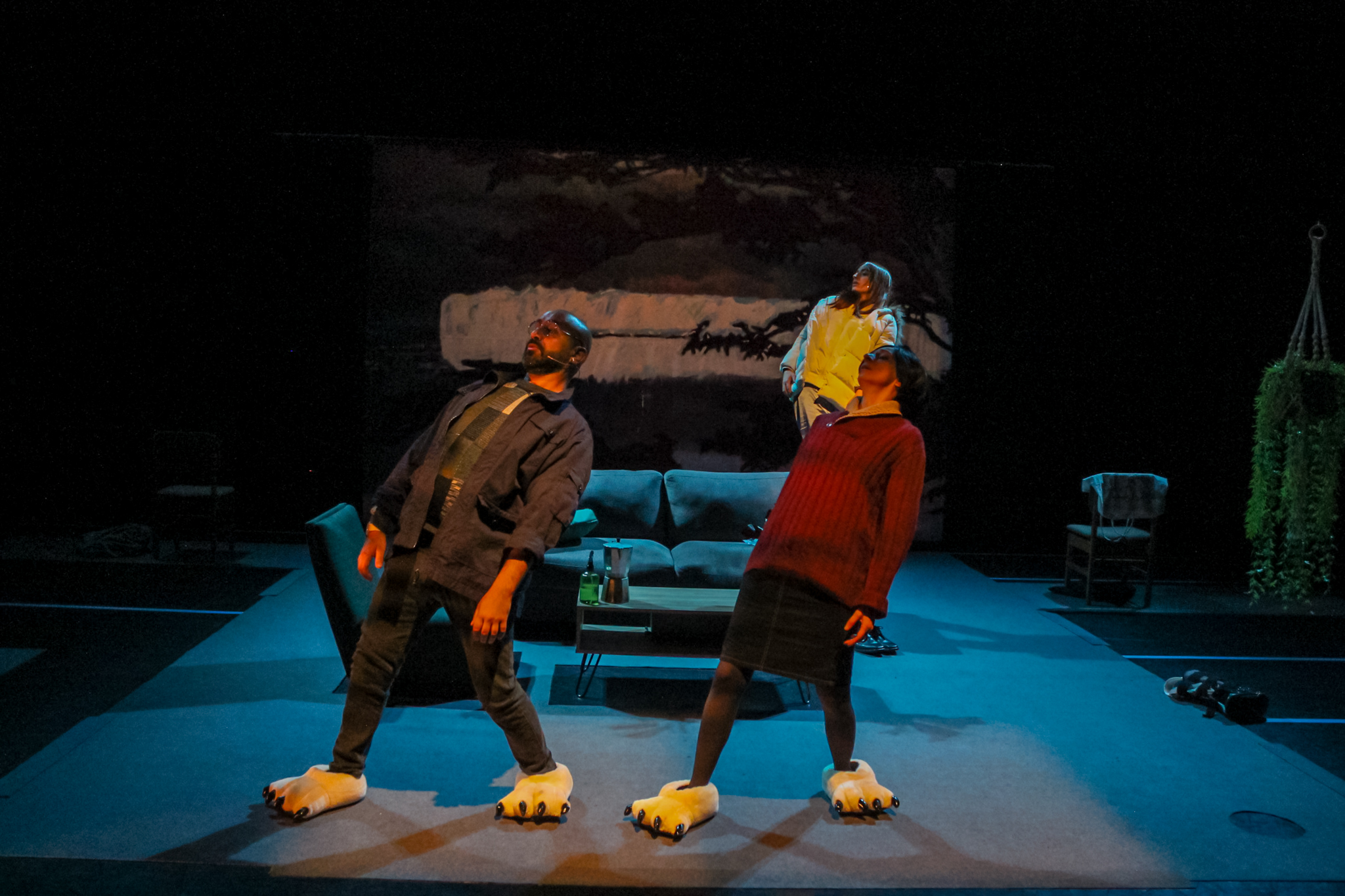 Esta inquietud por explorar el lipsync y las posibilidades técnicas del desajuste entre cuerpo y voz viene de una trayectoria previa. “Me interesa mucho la exploración sobre metodologías o recursos técnicos, en este sentido el lipsync. Creo que después de la obra Continuidad de las cajeras de Jorge Contreras (XX Muestra Nacional de Dramaturgia 2022), en que a ratos exploré con lipsync y donde toda la obra era una grabación también, y un paisaje sonoro, quise dar continuidad a esta exploración, desarrollando las posibilidades técnicas y actorales de este traspaso. En Compañía Maleza, con Maleza y Un poco Invisible, hacíamos doblaje en vivo de muñecos en stop-motion. Hay un claro interés que creció sobre todo después de un Magíster en Artes Visuales que hice en la Universidad de Chile, donde realicé ejercicios con un cuerpo y otra voz, pero en animación”, explica la directora. Esta línea de trabajo se profundizó con la investigación escénica liderada por el artista visual Gonzalo Aguirre entre 2021 y 2023, gracias a un Fondo de Residencias de Artes Escénicas del MINCAP.