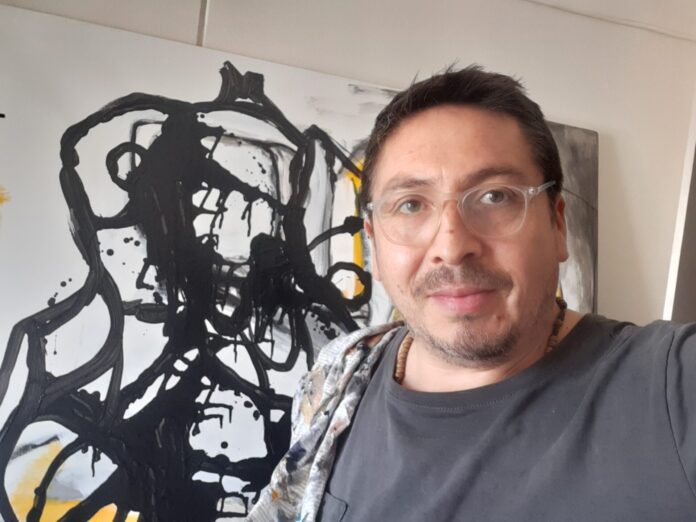 Con mucha esperanza y alegría por el futuro de mi hijo, muy conforme de ser parte de este proceso histórico de cambio en mi país. Para mí, lo relevante es Ser y Estar cuando la cosa cambia, cuando se mueve es lo apreciable, los futuristas plasman la velocidad. Por citar un ejemplo, la representación del estallido comienza antes, y es como cuando un embrión se comienza a fecundar en el vientre de la mujer, inicia esa metamorfosis embrionaria del cambio de materia increíble para formar un Ser. Esa objetividad de la realidad del Estallido, es la que observa también mi subjetividad y acompaño en su proceso, esa descarga de un trayecto de 30 años de razón e historia que coinciden, que se expresa en una nueva generación, en un nuevo embrión, que tiene conciencia consiente, sin miedos y se manifiesta como una alucinante voluntad del ser libertario, es la irritación y la angustia del drama del hombre común que comienza a florecer, y es con relación a estas imágenes que comienzas nuevamente a idear o representar ese auténtico drama individual y colectivo de ciudadanos anónimos que, a partir de ese momento, van a ir ganando protagonismo en este sentimiento trágico del Expresionismo que nace apropósito del contexto social y que vas dibujando la dualidad del mundo como -por ejemplo- de Fausto y Mefistófeles con sus trifulcas de conciencias; el sabio y el demonio, la bondad y la maldad. Y su espiritualidad de su libertad, su destino, lo consciente e inconsciente son los polos donde se mueve la tragedia plasmada en la tela y emite el sentimiento Expresionista más bello y romántico.