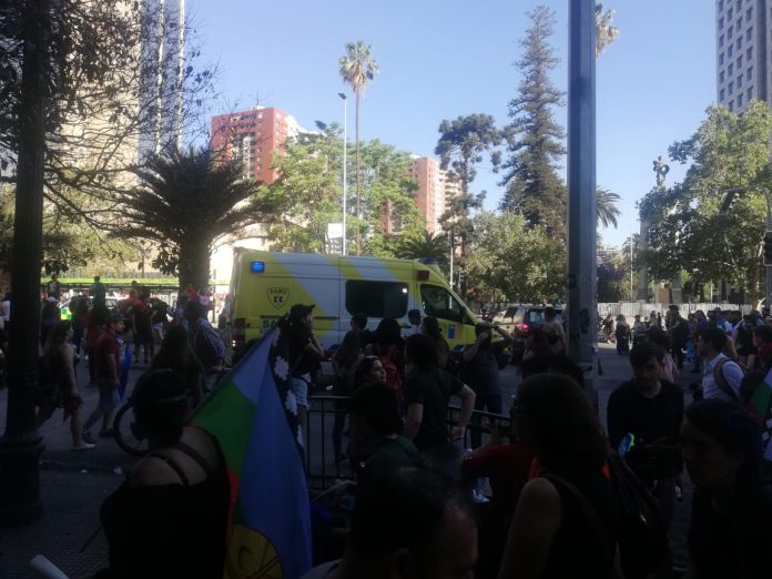 Minutos más tarde, cuando llegó la ambulancia para que el joven fuese trasladado al centro asistencial más cercano, un “guanaco” (vehículo lanza aguas) lanzó un fuerte chorro de agua contra la ambulancia, impidiendo el traslado de la persona que presentaba débiles signos vitales. Al mismo tiempo, llegaba una voluntaria del SAMU herida por balines en una de sus piernas.