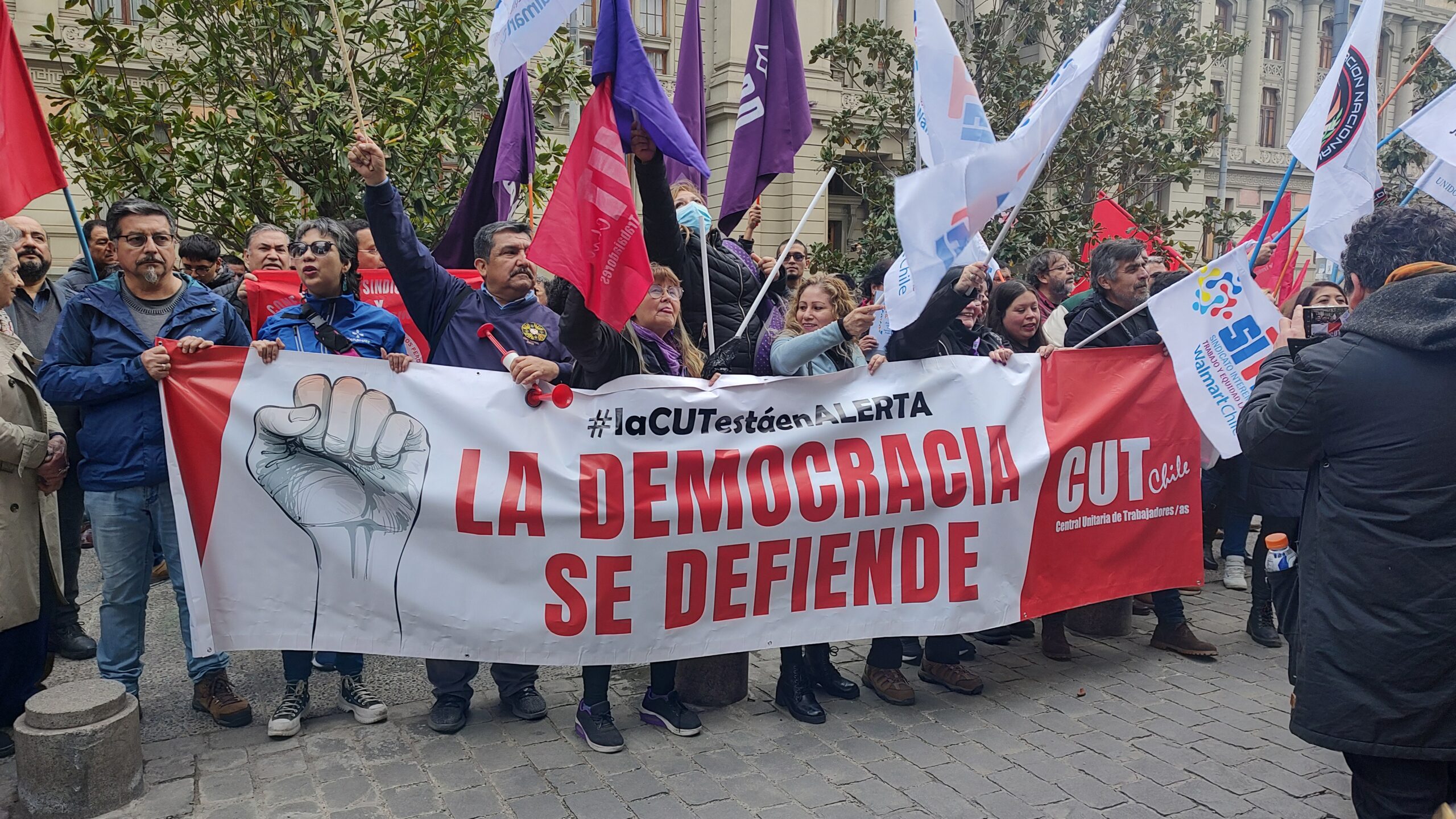 “Como parte de la sociedad civil organizada, la cual se ve amenazada por el proyecto de la nueva constitución, la Central Unitaria de Trabajadores y Trabajadoras, queremos declarar que no vamos a aceptar que este proyecto de la extrema derecha y ChileVamos, que nos lleva directamente a retroceder en nuestros derechos y libertades, destruyendo la democracia”, señala la entidad sindical respecto de la redacción de una nueva Constitución.