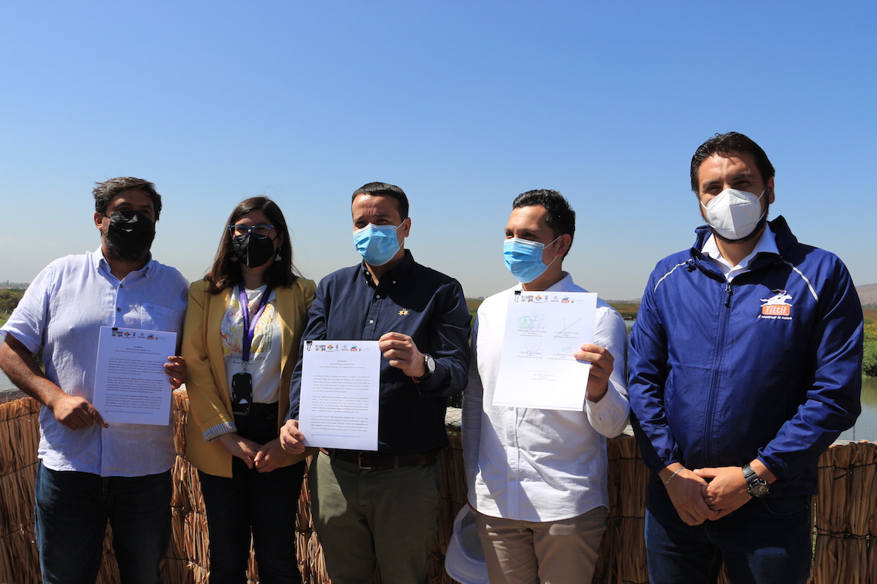 En el Humedal de Batuco, los alcaldes de Pudahuel, Ítalo Bravo; de Lampa, Jonathan Opazo; de Til Til, Luis Valenzuela; la alcaldesa de Quilicura, Paulina Bobadilla; y el presidente de Fundación Batuco Sustentable, Eduardo Acuña, firmaron la declaración en la que se comprometen a trabajar de manera conjunta cinco ejes.