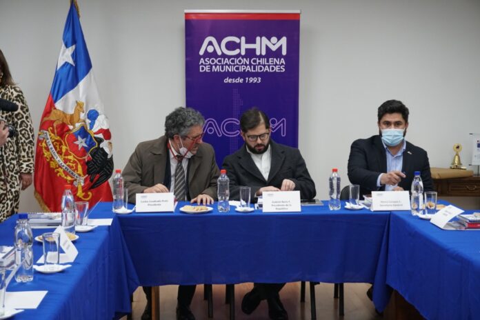 El presidente Boric señaló que, “nos hemos reunido con la Asociación Chilena de Municipalidades haciendo un trabajo con quienes conocen de más cerca las preocupaciones de nuestra ciudadanía. Tenemos una agenda ambiciosa, de mejora del Fondo Común Municipal, hacernos cargo de las plantas municipales, de cómo trabajar en la falta de agua, en muchas comunas, o los problemas que son derivados los 5 mil metros cuadrados que han desajustado todo el orden del crecimiento de las ciudades”.