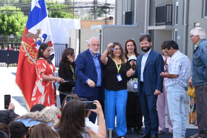 La mañana de este martes 16 de diciembre, el Presidente de la República, Gabriel Boric Font, junto al Ministro de Vivienda y Urbanismo, Carlos Montes, encabezó una ceremonia de entrega de 47 viviendas del proyecto de viviendas industrializadas “Comunidad Santa Olga”, ubicado en la comuna de Quilicura.