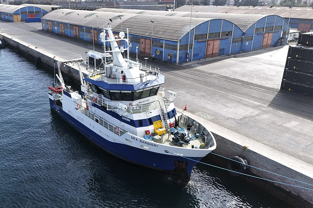 El barco científico “Dra. Barbieri” fue bautizado en reconocimiento al aporte a la investigación de la destacada ingeniera pesquera y Doctora en Oceanografía María Ángela Barbieri Bellolio y a todas las mujeres que, en circunstancias muy adversas, se dedican a las Ciencias del Mar.