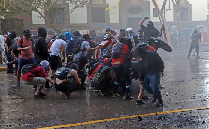 A 200 metros del vapuleado General Baquedano, está la Primera Línea. Son jóvenes entre los 14 y 21 años que le dan “guerra” a Carabineros como dicen- y que,  a eso de las 20:30 horas, durantetodos los santos días de la semana, actúan como reloj: se acabó el “hueveo”, vamos reprimiendo.Acción  y reacción.