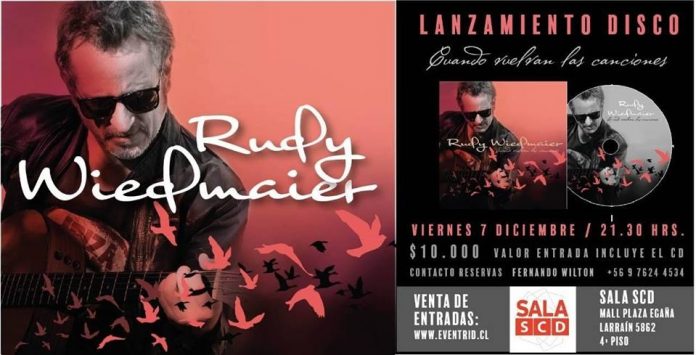 El pasado viernes 7 de diciembre a las 21:00 horas en la Sala SCD del Plaza Egaña, el cantautor, guitarrista y tecladista Rudy Wiedmaier presentó su nuevo disco “Cuando vuelvan las canciones”, con un concierto dividido en dos partes: acústica y eléctrica. El cantautor nacional, acompañado de su banda, además recorrió parte de su discografía.