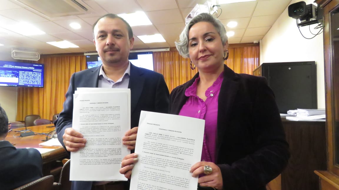 Los diputados Luis Cuello y Alejandra Placencia presentaron un “téngase presente” en la Comisión Revisora de la Acusación Constitucional contra Ángela Vivanco, tachando como “acto de mala fe” la solicitud de la defensa de la ministra de la Corte Suprema, que busca inhabilitar a 62 legisladores, entre ellos el diputado Cuello y la diputada Placencia.